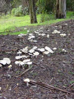 This species is so ubiquitous in the Pacific Northwest that it is easy to stop noticing it and appreciating its beauty. Despite the attractive stature, this mushroom has no appeal for the table due to its strong earthy odor (i.e. dry leaves).