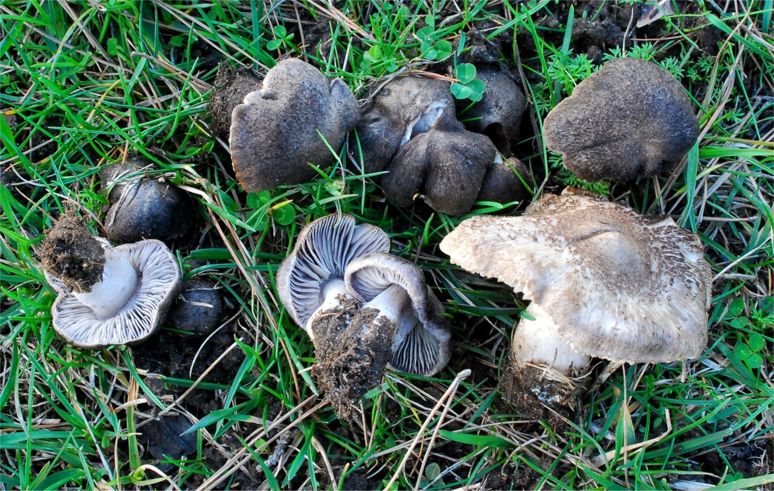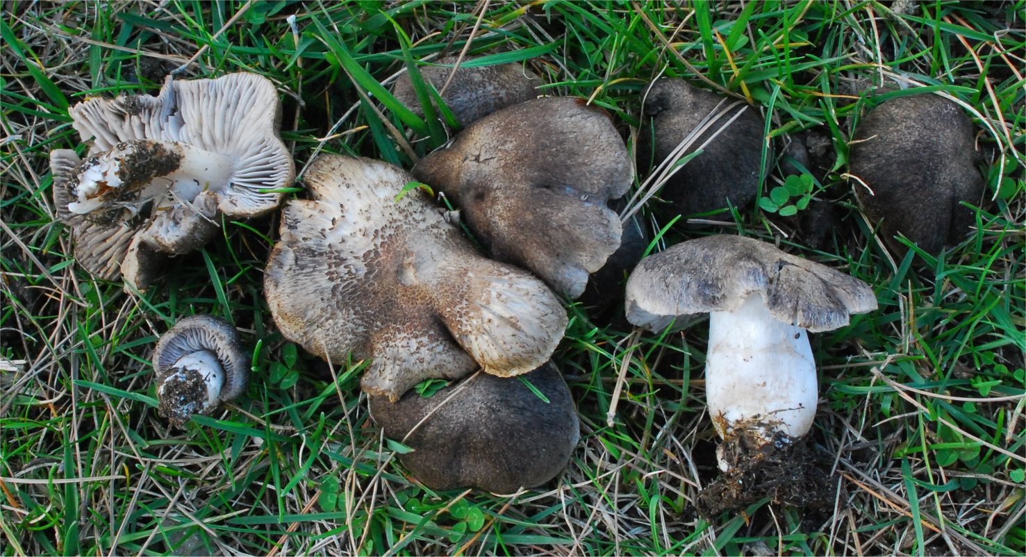 , but has distinct grayish velar remnants on the stipe and also has a chubbier stature.