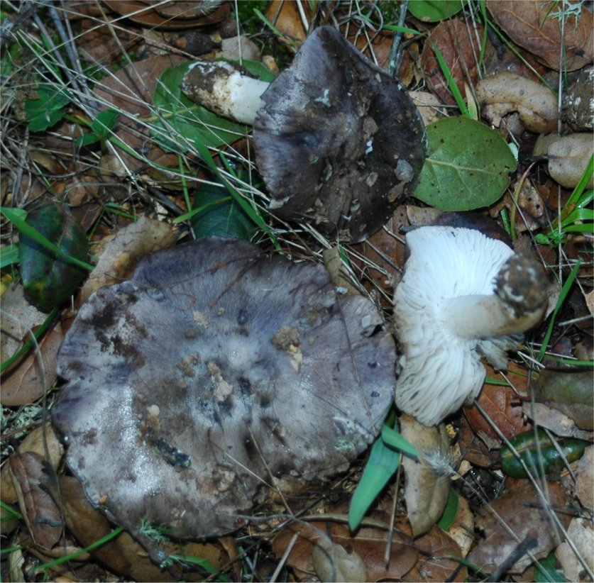 occurs occasionally under Live Oak and is instantly recognizable by the deep gray violet cap color.