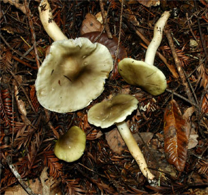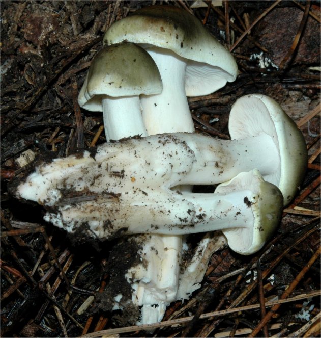 | The appearance and stature of this mushroom can vary a lot with greenish to grayish tints on the cap, but the odor is unmistakable, varying between slightly soapy perfumy to disgusting at age. |