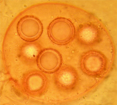 Spores: 16-18µ globose, almost smooth