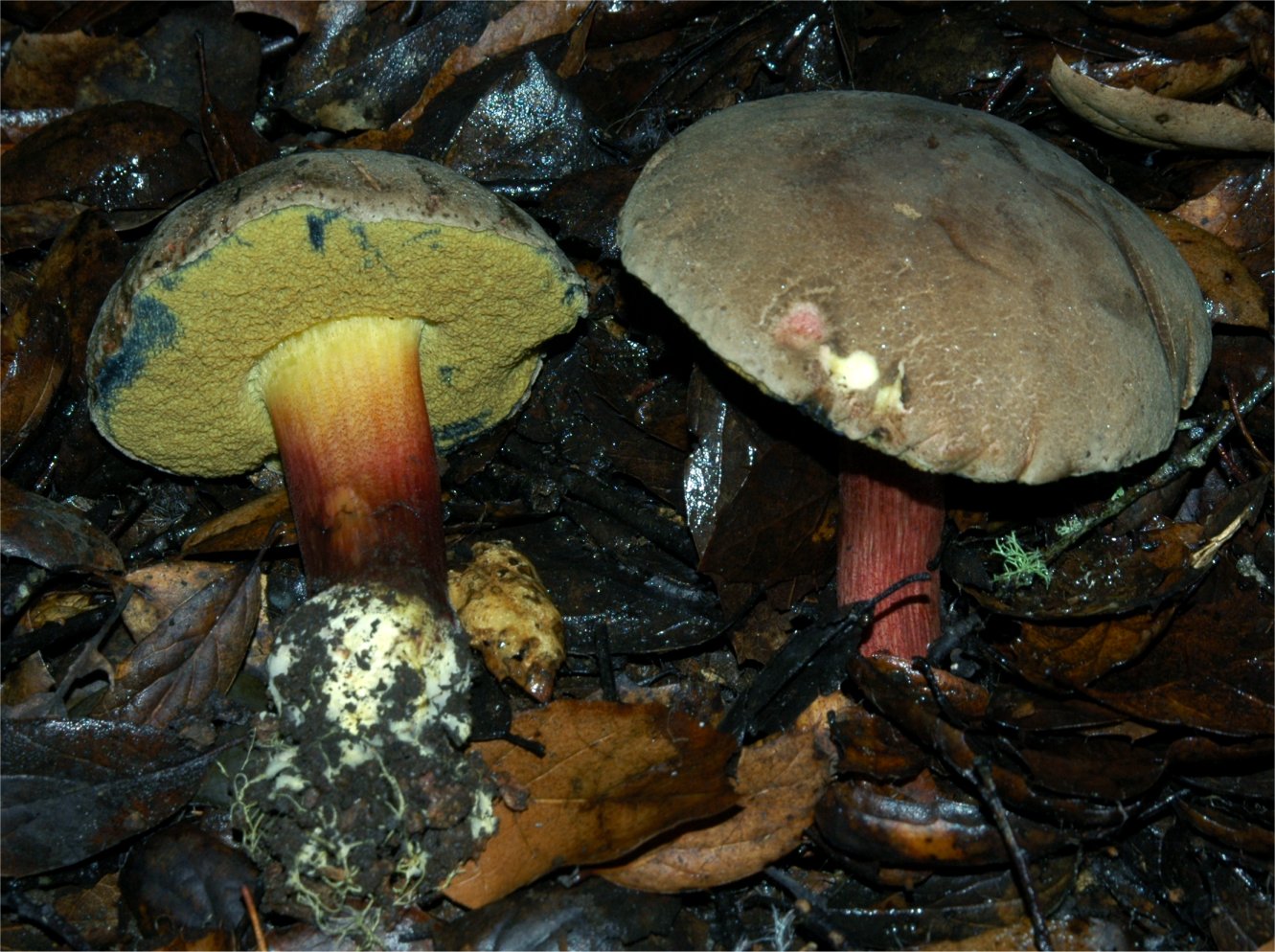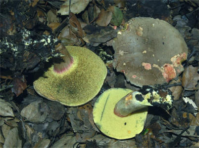 | This is the most common Xerocomus species in Northern California. It is very similar to X. chrysenteron, but tends to be slightly larger. The truncated spores are its most distinct characteristic. Some sources attempt to segregate X. truncatus and X. chrysenteron on the basis of the degree of pink coloration under the cuticle, but I find this technique not particularly convincing, as both species have that feature. | ||