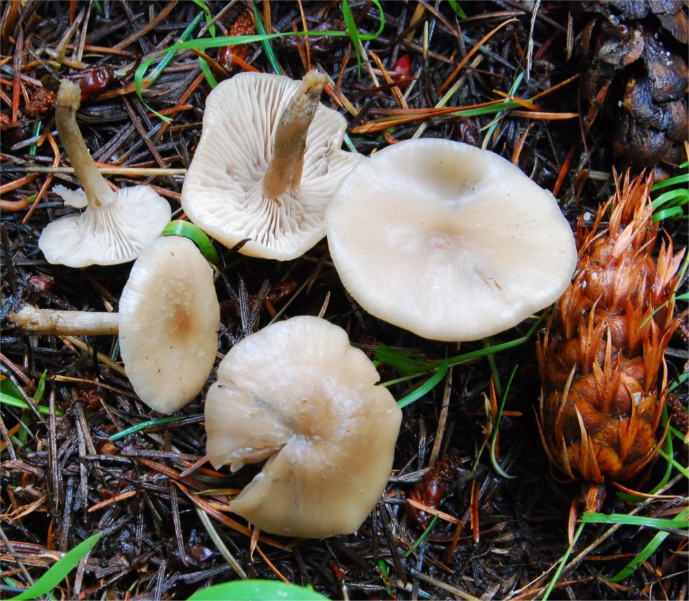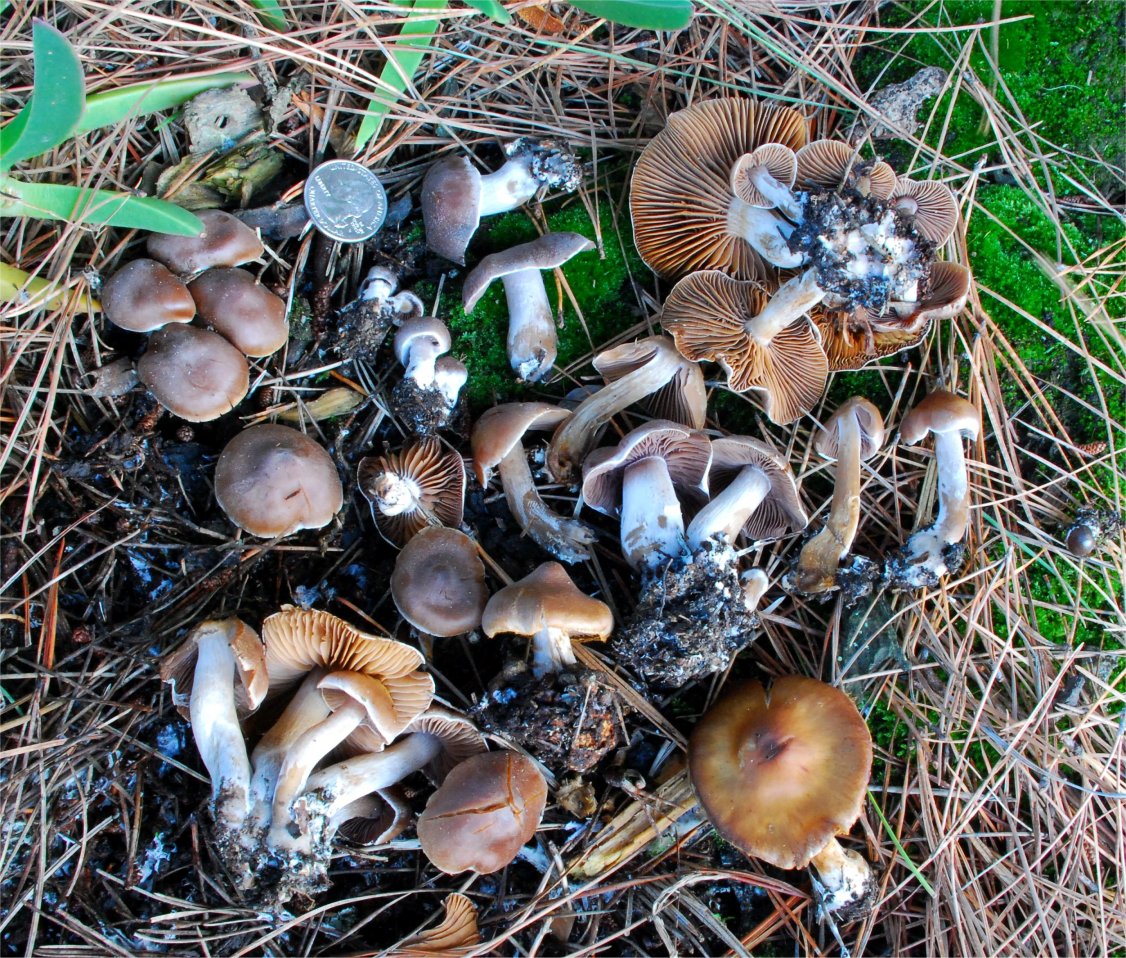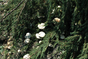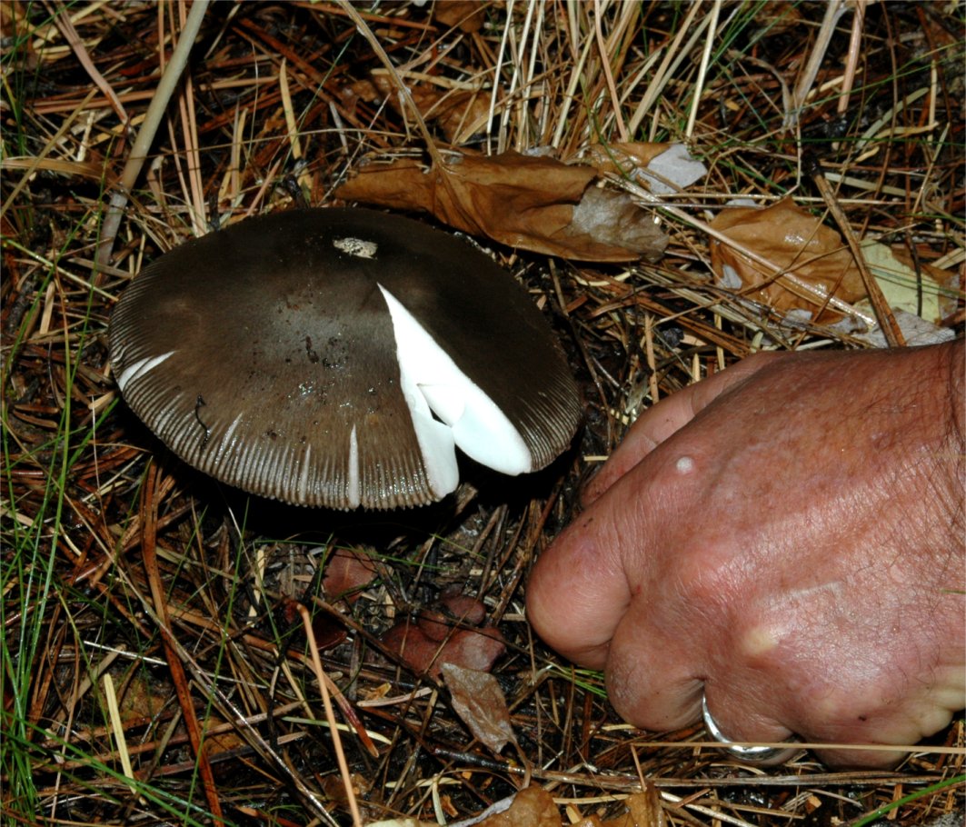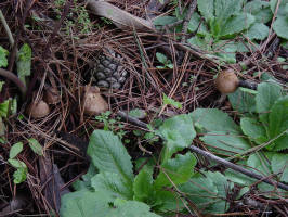 | 11) HUMAN MATTERS -- BODY PARTS AND ARTIFACTS. The main motivation for including such in the photo is the desire to show scale. Yet, I agree with Nathan Wilson (MushroomObserver.org) and Ron Pastorino (SOMA) that the practice may create less than appealing photographs. In most cases, I believe that scale can be conveyed by well known natural objects, such as cones, leaves, etc. Here are a few examples, make your own choice. | |||