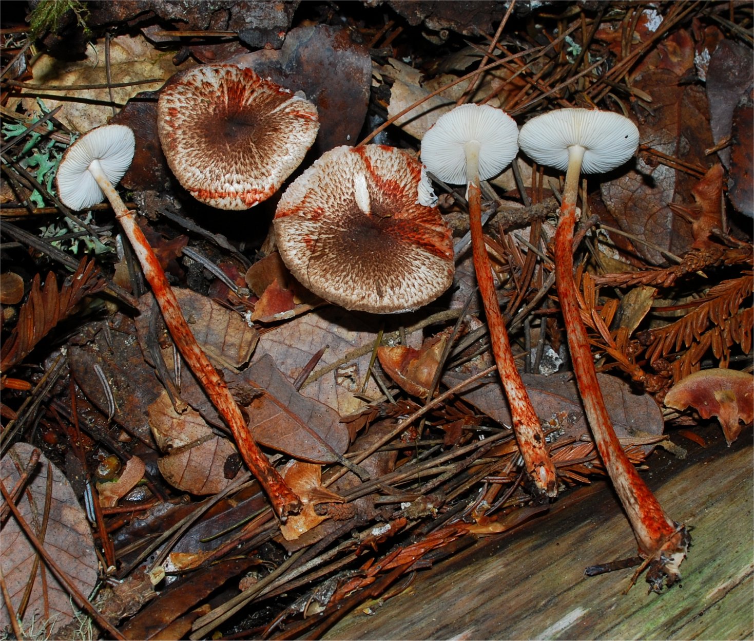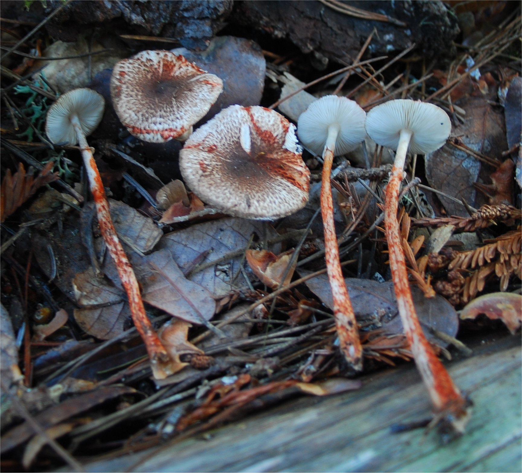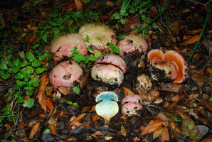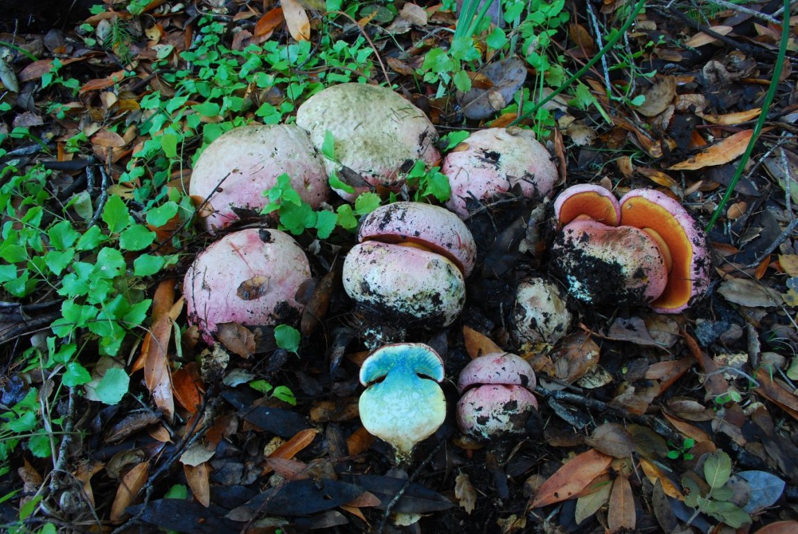 | 11) HUMAN MATTERS -- BODY PARTS AND ARTIFACTS. The main motivation for including such in the photo is the desire to show scale. Yet, I agree with Nathan Wilson (MushroomObserver.org) and Ron Pastorino (SOMA) that the practice may create less than appealing photographs. In most cases, I believe that scale can be conveyed by well known natural objects, such as cones, leaves, etc. Here are a few examples, make your own choice. | |||