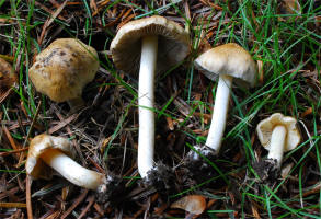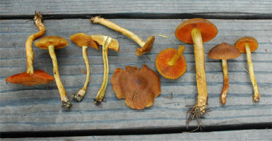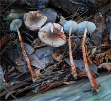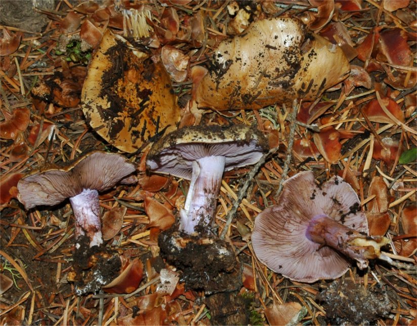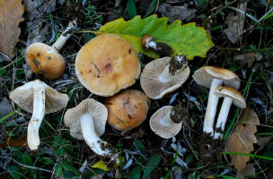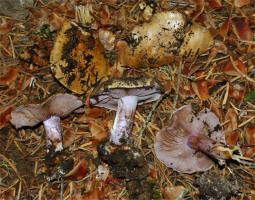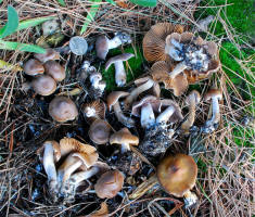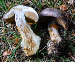 | 3) POOR CHOICE OF COLLECTIONS Using old/damaged specimens or collections consisting of a single fruitbody for id purposes is not a good idea. Except in rare circumstances of absolute necessity, one should ignore such collections, Go find another one, or wait for a better opportunity. While true for most Genera, this rule is especially pertinent to Cortinarius where older fruitbodies simply cannot convey enough information that can be used for obtaining a good id. | |||