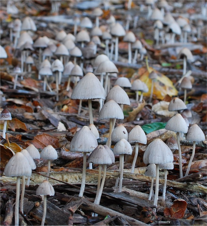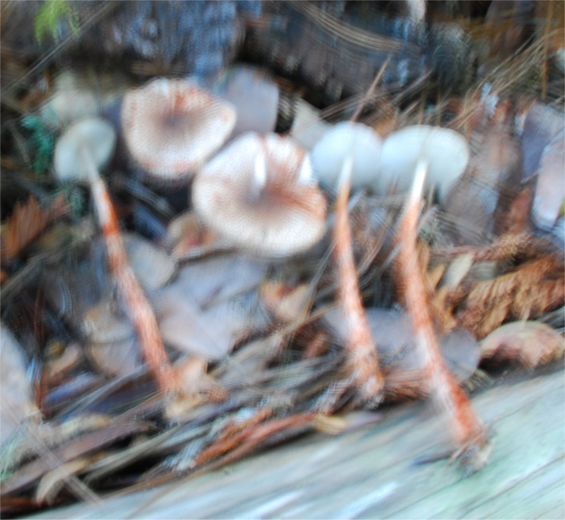 | 4) (TOO SHALLOW) DEPTH OF FIELD This one is trickier and presents questions even to more experienced photographers. A lot of blurring takes place when shooting mushrooms because the subjects are displaced quite much from the focus point. This is the primary driving force for Mushroom Photographers to use higher F-stops. But that requires longer exposure times. And that often requires that the camera is mounted instead of hand-held. Small, or long stemmed mushrooms present that challenge to a greater extent as there may be significant distance between all parts of the group that one is trying to capture. | |||
