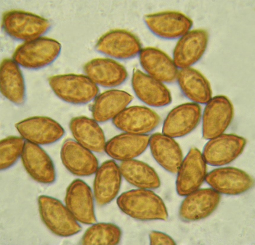 ![]() Spores: 12-13x7-8µ large and broadly wrinkled -- "tuberculate" was a word Kauffman used for such.